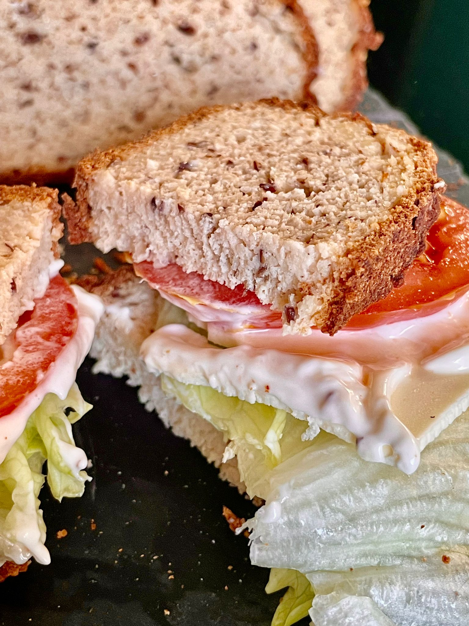 Almond, Eggs, Flaxseed, Gluten-free Baking Powder, Cream, Psyllium Husk, Apple Cider Vinegar, Yeast, Cinnamon, Salt.